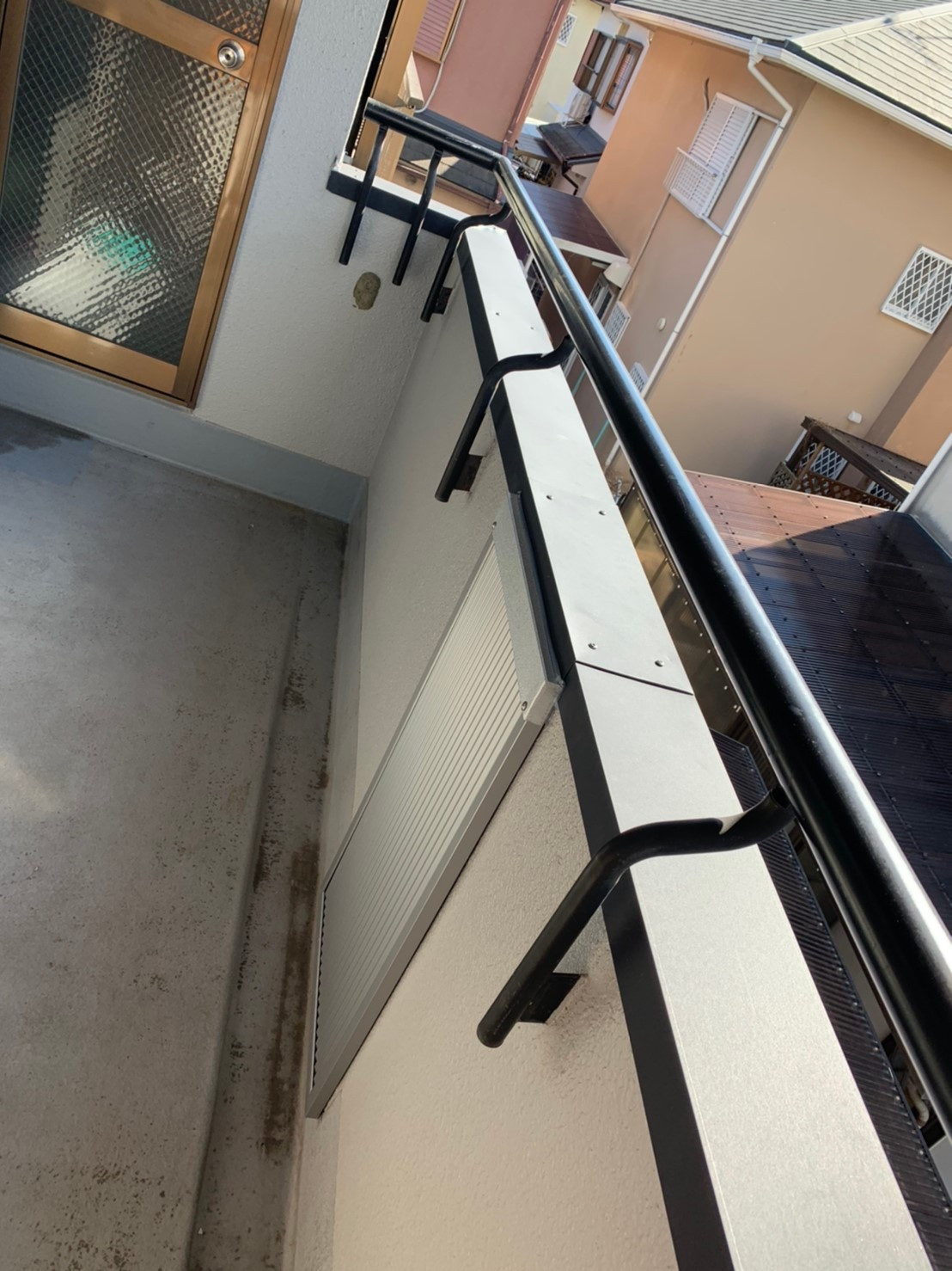 昨日摂津市の方でバルコニーの板金笠木を取付けしました。