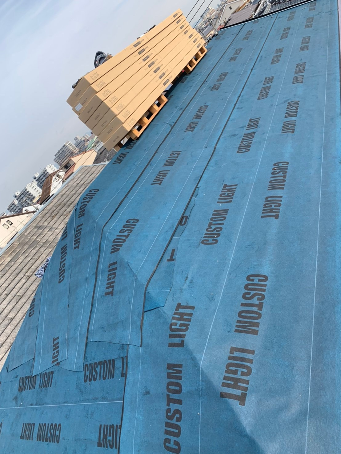 写真にある、入母屋の壁側の雨押えなのですが、雨押えはスーパーガルテクト と壁側の境目からの雨の侵入を