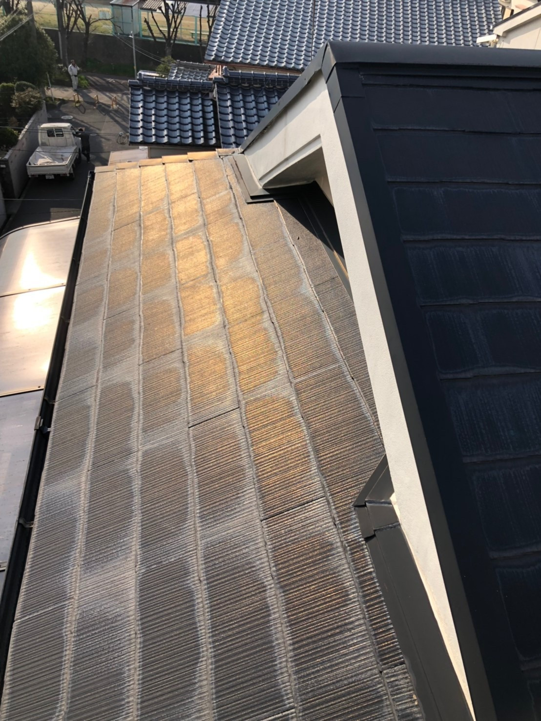 こちらのK邸では築年数が長く劣化、一部強風によるめくれ。