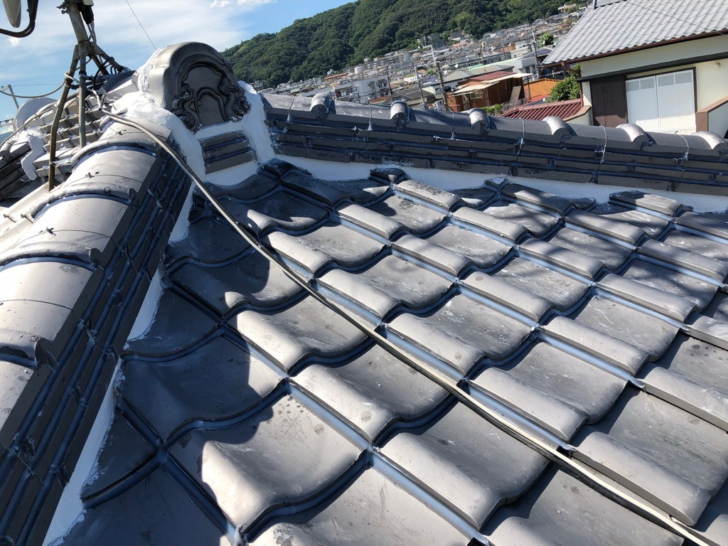 漆喰で瓦と瓦をしっかり接着し固定しておけば、葺き土に水が浸入するのを防ぎ、多少の雨や風・
